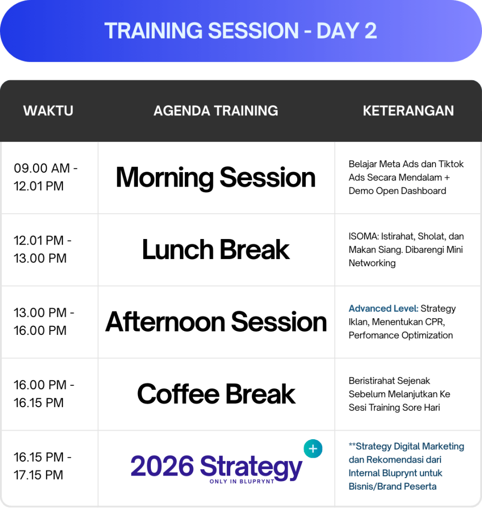 Bluprynt berbeda karena tidak hanya sekadar pelatihan singkat, tetapi sebuah ekosistem lengkap. Anda belajar langsung dari praktisi, mendapat kurikulum yang relevan dengan tren terbaru, serta dukungan komunitas dan sesi konsultasi berkelanjutan. Hasilnya, bimbingan Anda tidak berhenti di kelas, tapi berkelanjutan bahkan setelah kelas atau training selesai dilakukan.